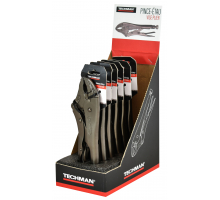 Mâchoires acier Cr-V forgé et trempé très haute dureté. Verrouillage/déverrouillage facile, d'une seule main. Réglage de la force de serrage par vis moletée. Revêtement anti-corrosion nickel-bronze. Livrée en présentoir pour toute commande au conditionnement.