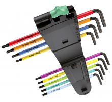 Clés mâles coudées doté d’un confortable gainage associé à un repérage couleur. Finition Black Laser assurant une excellente protection contre la corrosion. Empreinte sphérique à l'extrémité de la partie longue pour travailler sans être parfaitement dans l'axe. Etui réalisé dans un matériau inusable, avec encoche pour magnétiser / démagnétiser les clés.