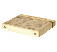 Idéal dans une cuisine pour servir de table d'appoint, de plan de travail supplémentaire ou de coin de découpe parfaitement aménagé. En bois "de bout", 100% naturel, lisse et sain, reconnu pour absorber les chocs lors de la découpe. Grande longévité. Vis traversantes pour resserrer les fibres du plateau.