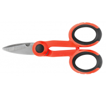 Ciseaux à lames en acier inoxydable rectifiées. Encoche coupe-câble. Idéal pour fils de section mince, câbles de petit diamètre, câbles à fibre optique, isolation, ficelles, cordons, etc.