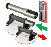 Ventouse robuste en acier et laiton conçue pour supporter des charges allant jusqu'à 120kg (certification GS-TÜV 65kg tenant compte du vieillissement). Coupelle caoutchouc avec 3 lèvres d'étanchéité. Mise en œuvre facile et rapide avec peu de pompage. Très haut niveau de sécurité grâce à l'indicateur visuel de fuite et à la protection qui empêche tout actionnement par inadvertance de la soupape de décharge. Convient à tous les matériaux lisses, plats et non-poreux tels que le verre, le plastique, le métal, le marbre, les plaquages de bois, etc. Facilite également le transport d'électroménagers. Livrée dans une mallette de rangement avec couvercle de protection de la ventouse.