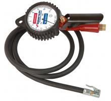 Pistolet de gonflage pour autos, motos, poids lourds et matériel agricole. Corps en thermoplastique extra résistant, anti-rayures, anti-chocs, avec manomètre. Approuvé par Michelin, homologué norme CEE. Fourni avec un certificat de garantie comportant le numéro de série du manomètre. Longueur tuyau : 1,5 m. Pression d'utilisation : 0,7 à 11 bar. Etalonnage conforme CE. Livré à l'unité en boîte carton. Entrée d'air : taraudage femelle 1/4.