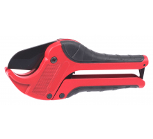 Coupe-tube en acier avec système de démultiplication à crémaillère, idéal pour les tuyauteries en PVC. Bouton d'ouverture latéral facilement accessible. Crochet de verrouillage.