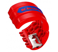 Coupe-tubes innovant, compact et confortable, facile à tenir dans la main, ne faisant pas de coupeaux. Permet la coupe rapide et nette des tuyaux en plastique, conduits électriques et manchons d’étanchéité de Ø 20 à 50 mm. S'adapte instantanément à tous les diamètres. Monture de la lame robuste en zinc moulé, et pivotante à 180° pour couper au centre ou à fleur, idéal pour couper au ras du mur. Lames en acier inoxydable (fourni avec 3 lames). Système de verrouillage pour le rangement/transport.
