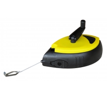 Boîtier ABS avec manivelle d'enroulement à blocage 4 positions. Guide fil avec feutre d’essuyage de poudre pour un trait fin et régulier. Grande capacité de stockage de poudre. Cordeau polycoton tressé Ø1,5 mm.