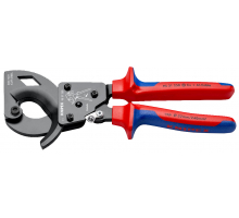 Robuste. Maniable. Solide. Système innovant à cliquet offrant trois niveaux de démultiplication pour simplifier la coupe. Manipulation facile grâce à son poids faible et à sa conception compacte. Pour câbles mono-conducteurs et multiconducteurs (classes 1 et 2 selon DIN EN 60228, VDE 0295, CEI 60228). Ouverture manuelle et déverrouillage d'urgence possibles dans chaque position. Verrouillable en position fermée pour le transport. Ne convient pas aux fils d'acier, aux câbles métalliques, ni aux conducteurs (très flexibles) à fils fins. Tranchants trempés et rectifiés avec précision permettant une coupe nette et propre sans écrasement du câble.