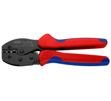 Pour cosses isolées, connecteurs et manchons 0,5 à 6 mm². Qualité de sertissage toujours élevée grâce aux profils de précision et au blocage forcé (déverrouillable). Pression de sertissage étalonnée en usine. Force amplifiée grâce à la démultiplication par genouillère pour un travail moins fatiguant. Bonne prise en main grâce à son poids faible, à sa forme courte et à ses poignées ergonomiques. Acier électrique au chrome-vanadium en qualité spéciale, trempé à l’huile.