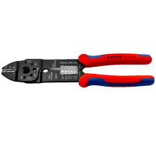 En acier avec poignées gainées ergonomiques. Pour couper et dénuder les fils électriques, couper les tiges filetées, sertir les cosses isolées et non isolées.