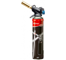 Chalumeau propane pour plombier de haute qualité. Allumage piezo. Cartouche à valve européenne pouvant être montée / démontée sans perte de gaz. Fonctionne grâce à un mélange de gaz propylène, butane et propane. Utilisable tête en bas pendant 15 secondes. Puissance : 1,15 KW. Autonomie : 2h. Flamme type dard. Température de flamme : supérieure à 2000 °C. Débit à 1,5 bar : 82 g/h. Energie : gaz butane, propane et propylène.