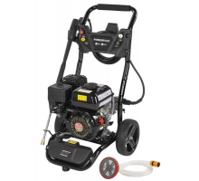 Nettoyeur haute pression avec moteur thermique à 4 temps 210cc, débit jusqu’à 540 L/h et une pression de 255 bars. Réservoir de détergeant 1600 ml intégré. Réservoir carburant 3L et huile 0,6L. Structure acier avec 2 grandes roues pour se délacer facilement et support pour enrouler le tuyau de 8 m. livré avec 4 buses différentes et un tuyau d’aspiration 2 m avec filtre, ce qui permet sans se brancher sur un réseau d’eau, à partir d’un puits ou d’une cuve d’eau de pluie par exemple.