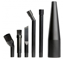 Composé de deux brosses, d'un suceur fin, de deux rallonges (droite et coudée) et d'un adaptateur pour tuyau Ø32mm. Permet d'aspirer ou souffler dans les endroits difficiles d'accès. Idéal pour les nettoyages en profondeur.